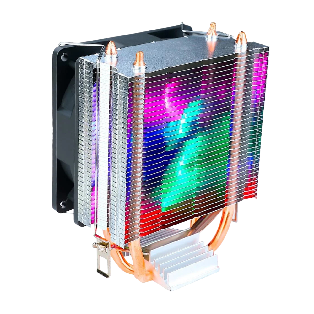 Compacto y eficiente cooler para CPU con ventilador de 90 mm e iluminación ARGB estática tipo rainbow. Equipado con 2 heatpipes de cobre, rodamiento hidráulico y compatibilidad con Intel LGA 1851/1700/1200/115X y AMD AM5/AM4/AM3, ofrece alto flujo de aire con bajo nivel de ruido.