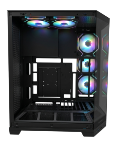 Iluminación Avanzada: 5 ventiladores ARGB/PWM incluidos (3 laterales Reverse + 2 superiores).