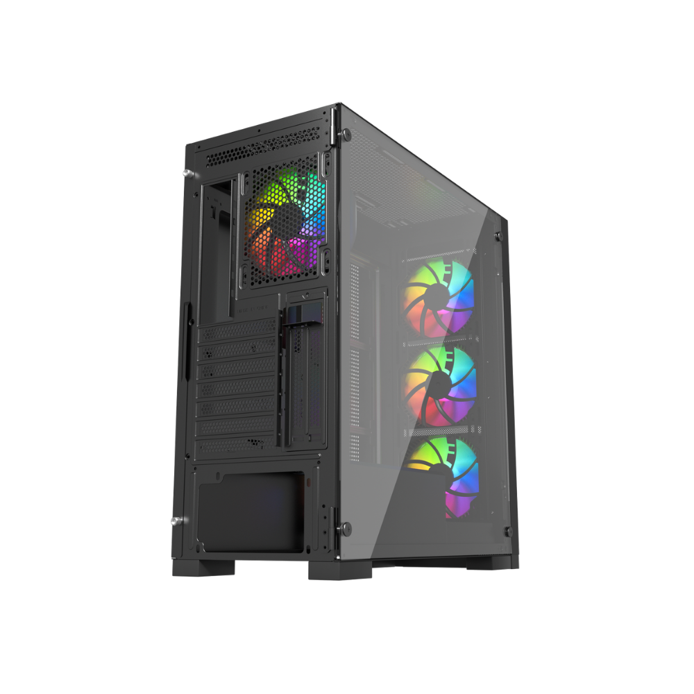 Incluye 4 ventiladores ARGB controlables por botón + controlador ARGB + PWM